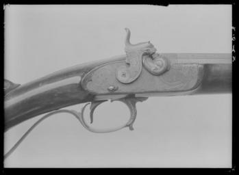 | Keywords: Slaglåsstudsare, Johannes Hult i Gravås, Värmland 1852 - Livrustkammaren - 27560.tif LSH artwork Johannes Hult bössmed bonde sv Åttsidig räfflad pipa 8 räfflor förlängd med svansskruv l 71 mm Snidad dekor på översidan bladknippe på h sida ihoprullad drake i vars gap en tändhattstapp av blånerat stål är skruvad nedre delen av skruven är avbruten och borta Vidövergången till pipan inslaget en linje av guld Därframför på de tre övre faserna ett fält med kantlinjer av inslaget silver framtill dessutom guldbågar I fältet signatur till v graverat frakturstil Förferdigad af i mitten med inslaget guld J HULT till h graverat frakturstil Grafås Under kammaren stämplat 1852 Vid mynningen inslaget en linje av guld och en av silver Under pipan en spång l 451 mm med två rörformiga rörkor framför överrörkan en fjädrande spärr för laddstocken <br/>Riktmedel Sikte av blånerat stål justerbart i höjdled genom en skjutbar visare på en graderad tavla visaraxeln försedd med kugghjul som via drev överför rörelsen till siktet Justerbart också i sidled siktskåran är placerad på en rulle som går att skruva åt sidan Spolformigt korn av silver omgivet av en bård av inslaget guld <br/>Slaglås med plant låsbleck överkanten framför fängpannans urtag rundad Graverad dekor i form avett rovdjur tiger med svans som fortsätter upp på fängpannan och är lindad runt fängpannans drake Plan hane med graverad rankdekor På hanhuvudet ligger ett plastiskt utformat pälsdjur svansen utgör tumgrepp Hanaxelns täckskruv saknas Slagfjäder och nöt blånerade <br/>Säkring Bakom hanen en skjutsäkring fingergrepp i form av ett djurkranium <br/>C-formig avtryckare med rundad framsida Långt avtryckarbleck framtill konturerat och graverat meden tropisk fågel <br/>Mörkt brunbetsad halvstock av trä Kolvhalsen bakre del på undersidan skuren i form av ett hjorthuvud Beslag av stål med graverad dekor Bakplåt i form av en krokodil med svansen på kolvryggen Om framtänderna trycks in öppnas gapet Därinnanför finns ett runt hål d ca 9 mm ev för skruvnyckel På kolvhalsen beslag i form av en palm Spetsrörka i form av en stövare med en fågel i munnen Sidbleck i form av en drake Kraftigt svängd varbygel med lång bakre arm på den platta bygeln graverat ett lejon rembygel vid det bakre fästet framför den främre stolpen ett löstagbart stöd Inga utifrån synliga skruvar I pipnoten fastskruvat ett regelhus av mässing med två skjutreglar <br/>Tillbehör <br/>Laddstock av stockens trä l 783 mm i ena änden ett mässingsbeslag l 107 mm med inskruvat huvud två graverade ringar samt bokstäverna A och B I andra änden likaså ett mässingsbeslag l 129 mm två avtagbara hylsor den främre åttsidig l 36 mm den bakre rund l 60 mm vänstergängad Vid övergången mellan det runda och det fasta beslaget graverad dekor 180 mm från spetsen islaget ett mässingsstift därovanför inslaget bokstaven A Ca 11 mm därnedanför ytterligare ett stift och bokstaven B Innanför den åttsidiga hylsan en plunderskruv och innanför den runda hylsan två fjädrar på den ena en klack <br/>Isärtagning <br/>För isärtagning av bössan trycks avtryckaren framåt varvid stödet framför varbygeln lossnar Därunder finns en skruv med städformigt huvud som låser både låsbleck och pipa via utskott med gängade hål möjligen har en nyckel till skruven funnits innanför bakplåtens lucka Därefter dras laddstocken ut skyddshylsorna skruvas av den yttre hylsan skruvas på igen varefter laddstocken skjuts in i laddstocksnoten med den fjädrande klacken in mot pipan Laddstocken förs in till dess bokstaven B är vid mynningen klacken hakar då i den första regeln som skjuts ur klacken på pipan Den andra skjutregelns ten är avsedd att gå igenom hål i pipskruven men denna saknar nu hål varför denna regel saknar funktion Laddstocken dras sedan ur noten pipskruven skruvas ur åt vänster varefter pipan kan lyftas ur noten Pipan hålls förutom av regeln på plats med en klack på svansskruvbladets undersida som går ner i urtag i stålbeslaget på kolvryggen original caption 1852 wood e3 - eldvapen - stock material trä - steel e1247 - eldvapen - pipa lås riktmedel och beslag material stål - silver e8 - eldvapen - stockdekor material silver - brass e7 - eldvapen - stockbeslag material mässing - gold e8 - eldvapen - stockdekor material guld size mm 203 g 4520 size mm 795 pipa size mm 1225 LRK basutställning Nordiska vapenformer Made in Sweden 2003 Förfärdigad af I Hult i Grafås anv e1 - eldvapen - pipa; Johannes Hult Förfärdigad af I Hult i Grafås anv e1 - eldvapen - pipa; Johannes Hult place of origin original filename LN_B15893_018773 39953 inventory number LRK 3376 27560 CC0 Slaglåsstudsare Johannes Hult i Gravås Värmland 1852 - Livrustkammaren - 27560-negative tif <gallery caption Different images of same object > File Slaglåsstudsare Johannes Hult i Gravås Värmland 1852 - Livrustkammaren - 61801 tif File Slaglåsstudsare Johannes Hult i Gravås Värmland 1852 - Livrustkammaren - 70363 tif File Slaglåsstudsare Johannes Hult i Gravås Värmland 1852 - Livrustkammaren - 96908 tif </gallery> Percussion muskets images from Livrustkammaren Media contributed by LSH dim-with multiple size templates Media contributed by LSH unmatched creator Media contributed by LSH 2014-11 |