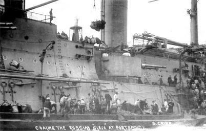 | Keywords: Slava1905-1917UK.jpg en The Imperial Russian battleship «Slava» in the United Kingdom ru Пог узка угля на линейный ко абль «Слава» в Англии ru Cite book Р ельников 2006 «Слава» последний б оненосец эпохи доцусимского судост оения 1901-1917 Исто ико-культу ный цент А О «Истфлот» Сама а Боевые ко абли ми а Russian 5-98830-007-3 ru еизвестен between 1905 1917 PD-RusEmpire PD-old Slava ship 1905 United Kingdom in the 1910s Canet 152 mm/45 naval gun Canet 75 mm/50 1891-1892 naval gun | ||||