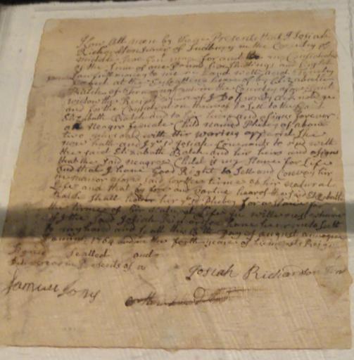MAKE A MEME View Large Image Slave document, 1764 - Framingham History Center - DSC00395.JPG Slave document 1764 Exhibit in the Framingham History Center Edgell Memorial Library 3 Oak Street Framingham Massachusetts USA Photography was permitted in the museum without ...