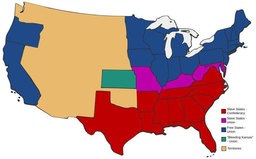| Keywords: Slave and Free States before the American Civil War 2.svg Free and Slave States in the period leading to the American Civil War Free states are blue or teal slave states are red or purple Territories are a neutral yellow See key for more information Based on Image US_Secession_map_1865 svg with information from en Image Freeandslavestates gif 2007 Self-made from public domain work Image US_Secession_map_1865 svg Adam Cuerden thumb left Simpler version Maps of the history of the United States History of the United States Maps showing African American history Slavery-related maps |