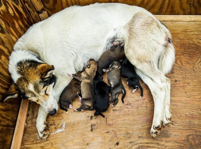 Keywords: sled dog puppies dog sled sled sledding mother dog dogs