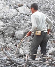| Keywords: Sledgehammer with very flexible handle - 01.jpg en Workers extracting rebar and other metal from concrete rubble at building demolition site Haikou City Hainan Province China 2012-04-27 own Anna Frodesiak cc-zero Uploaded with UploadWizard Rebar Sledgehammers Files by User Anna Frodesiak Rubble |