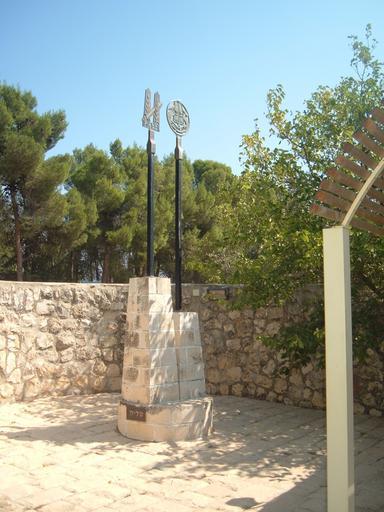 Keywords: Slikbirya.jpg A memorial bearing palmach and bney Akiva insignia where an underground munitions storage used to be in birya fortress אנדרטה הנושאת את סמ י הפ מ ח ובני עקיבא נמצאת היכן שהיה הס יק במצודת ביריה Own 2007-09-21 Boazshlomi Birya fortress Palmach Bnei Akiva