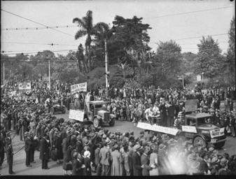 | Keywords: SLNSW 24257 Sydney University Commem Commemoration Day procession through streets.jpg en Sydney University Commem Commemoration Day procession through streets 13/5/1938 http //www acmssearch sl nsw gov au/search/itemDetailPaged cgi itemID 24257 item <br/>http //www acmssearch sl nsw gov au/search/itemDetailPaged cgi itemID 37473 album <br/>http //www acmssearch sl nsw gov au/search/itemDetailPaged cgi itemID 395018 collection Creator Sam Hood This image may be used freely without requesting permission The State Library of New South Wales http //www acmssearch sl nsw gov au/search/itemPopLarger cgi itemID 24257 requests acknowledgement that the image is from the collections of the State Library of NSW Photographs 32812 images copied from glass and cellulose nitrate photonegatives The Library first purchased a large collection of negatives from Gladys Hood in 1972 This collection which included nitrate negatives which have subsequently been copied at DG 0N4 NCY 28-61 was transferred to a videodisc in 1991 and each image indexed individually Ted Hood assisted with the indexing; images were also identified using surviving studio registers The videodisc known as the Home Away disc or simply the Hood collection was digitised in 1996 and mounted on the Internet with upgraded index records via the online catalogue in December 1998 Purchased from Gladys Hood 1972 Copyright restrictions may apply - Photographs in this collection created before 1955 are all out of copyright Photographs created after 1955 are in copyright for the life of creator plus 70 years ; Please acknowledge - Mitchell Library State Library of New South Wales and Courtesy copyright holder 395018 Sam Hood photographic collection 1916-ca 1955 Approximately 44 800 negatives ; 7 309 photographic prints ; 3 boxes of textual material ; 6 film reels The Library first purchased a large collection of negatives from Gladys Hood in 1972 This collection which included nitrate negatives which have subsequently been copied at DG 0N4 NCY 28-61 was transferred to a videodisc in 1991 and each image indexed individually Ted Hood assisted with the indexing; images were also identified using surviving studio registers The videodisc known as the Home Away disc or simply the Hood collection was digitised in 1996 and mounted on the Internet with upgraded index records via the online catalogue in December 1998 ; Another collection from Sam Hood's studio was purchased in 1993 from Gladys Hood's descendants This comprised 7300 photoprints PXE 789 and ca 12000 negatives ON 204 Digitisation of important photographs in PXE 789 began Mar 2002 but ON 204 has not been digitised and must be viewed at the Library Samuel J Hood's 1872-1953 claimed to have been born 1870 but the South Australian Birth Index gives date as 20 August 1872 His career as a photographer began in the 1880s ; He ran a successful business in ships portraits these negatives are now held by the Australian National Maritime Museum Sydney and portraits of people in the late nineteenth - early twentieth century The State Library has little representation of this period In 1918 he acquired the Dalny Studio at 124 Pitt Street and began to expand his business into press photography providing photographs for the Sydney Mail the Australasian the Daily Guardian the Daily Telegraph Pictorial the Labor Daily the Sun the Daily News and the Sydney Morning Herald Press photography increasingly came to dominate his business and in 1934 he joined the Labor Daily for a short time as a full-time photographer engaging other staff to look after his studio ; By the mid-1930s most newspapers employed their own photographers and Hood's commissions from the papers began to decline Hood sought other kinds of commissions and won a number of long term advertising and commercial contracts He contributed a number of photographs of Sydney buildings and streets to Building Construction and Australasian Engineer during the late 1930s and early 1940s Hood also had extensive contacts in the entertainment industry who called upon him to document celebrity events and stars as well as theatre advertising Throughout his career he worked at the stock-in-trade for commercial photographers portraits weddings and even funerals ; A number of photographers worked for Dalny Studio some of these include Ernie Bowen Gus Daley Jack Lazern Lethington Maitland as well as Sam's own children Gladys and Ted ; For detailed biographical information about photographer Sam Hood see Sydney exposures through the eyes of Sam Hood his Studio 1925-1950 / Alan Davies Sydney State Library of New South Wales 1991 Out of copyright - Created before 1955 Photographs ; Please acknowledge - Mitchell Library State Library of New South Wales advertising photography; commercial photography; photojournalism 395018 Original item no NCY41/595 yes no PD-Australia PD-1996 Australia Images from the State Library of NSW album 37473 SLNSW media uploaded by User 99of9 University of Sydney Photographs by Sam Hood |