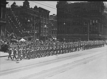 | Keywords: SLNSW 25472 Parade on Lord Mayors Patriotic Appeal day.jpg en Parade on Lord Mayor's Patriotic Appeal day 1/2/1939 http //www acmssearch sl nsw gov au/search/itemDetailPaged cgi itemID 25472 item <br/>http //www acmssearch sl nsw gov au/search/itemDetailPaged cgi itemID 37473 album <br/>http //www acmssearch sl nsw gov au/search/itemDetailPaged cgi itemID 395018 collection Creator Sam Hood This image may be used freely without requesting permission The State Library of New South Wales http //www acmssearch sl nsw gov au/search/itemPopLarger cgi itemID 25472 requests acknowledgement that the image is from the collections of the State Library of NSW Photographs 32812 images copied from glass and cellulose nitrate photonegatives The Library first purchased a large collection of negatives from Gladys Hood in 1972 This collection which included nitrate negatives which have subsequently been copied at DG 0N4 NCY 28-61 was transferred to a videodisc in 1991 and each image indexed individually Ted Hood assisted with the indexing; images were also identified using surviving studio registers The videodisc known as the Home Away disc or simply the Hood collection was digitised in 1996 and mounted on the Internet with upgraded index records via the online catalogue in December 1998 Purchased from Gladys Hood 1972 Copyright restrictions may apply - Photographs in this collection created before 1955 are all out of copyright Photographs created after 1955 are in copyright for the life of creator plus 70 years ; Please acknowledge - Mitchell Library State Library of New South Wales and Courtesy copyright holder 395018 Sam Hood photographic collection 1916-ca 1955 Approximately 44 800 negatives ; 7 309 photographic prints ; 3 boxes of textual material ; 6 film reels The Library first purchased a large collection of negatives from Gladys Hood in 1972 This collection which included nitrate negatives which have subsequently been copied at DG 0N4 NCY 28-61 was transferred to a videodisc in 1991 and each image indexed individually Ted Hood assisted with the indexing; images were also identified using surviving studio registers The videodisc known as the Home Away disc or simply the Hood collection was digitised in 1996 and mounted on the Internet with upgraded index records via the online catalogue in December 1998 ; Another collection from Sam Hood's studio was purchased in 1993 from Gladys Hood's descendants This comprised 7300 photoprints PXE 789 and ca 12000 negatives ON 204 Digitisation of important photographs in PXE 789 began Mar 2002 but ON 204 has not been digitised and must be viewed at the Library Samuel J Hood's 1872-1953 claimed to have been born 1870 but the South Australian Birth Index gives date as 20 August 1872 His career as a photographer began in the 1880s ; He ran a successful business in ships portraits these negatives are now held by the Australian National Maritime Museum Sydney and portraits of people in the late nineteenth - early twentieth century The State Library has little representation of this period In 1918 he acquired the Dalny Studio at 124 Pitt Street and began to expand his business into press photography providing photographs for the Sydney Mail the Australasian the Daily Guardian the Daily Telegraph Pictorial the Labor Daily the Sun the Daily News and the Sydney Morning Herald Press photography increasingly came to dominate his business and in 1934 he joined the Labor Daily for a short time as a full-time photographer engaging other staff to look after his studio ; By the mid-1930s most newspapers employed their own photographers and Hood's commissions from the papers began to decline Hood sought other kinds of commissions and won a number of long term advertising and commercial contracts He contributed a number of photographs of Sydney buildings and streets to Building Construction and Australasian Engineer during the late 1930s and early 1940s Hood also had extensive contacts in the entertainment industry who called upon him to document celebrity events and stars as well as theatre advertising Throughout his career he worked at the stock-in-trade for commercial photographers portraits weddings and even funerals ; A number of photographers worked for Dalny Studio some of these include Ernie Bowen Gus Daley Jack Lazern Lethington Maitland as well as Sam's own children Gladys and Ted ; For detailed biographical information about photographer Sam Hood see Sydney exposures through the eyes of Sam Hood his Studio 1925-1950 / Alan Davies Sydney State Library of New South Wales 1991 Out of copyright - Created before 1955 Photographs ; Please acknowledge - Mitchell Library State Library of New South Wales advertising photography; commercial photography; photojournalism 395018 Original item no NCY44/291 yes no PD-Australia PD-1996 Australia Images from the State Library of NSW album 37473 SLNSW media uploaded by User 99of9 Photographs by Sam Hood |