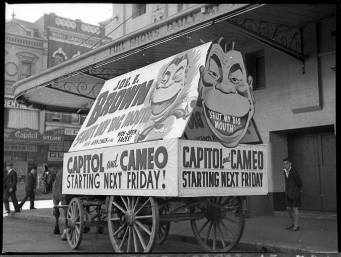 | Keywords: SLNSW 26563 Capitol Theatre advertising on a cart for Joe E Browns Shut my big mouth.jpg  en Capitol Theatre advertising on a cart for Joe E Brown's Shut my big mouth 1945-6 http //www acmssearch sl nsw gov au/search/itemDetailPaged cgi itemID 26563 item <br/>http //www acmssearch sl nsw gov au/search/itemDetailPaged cgi itemID 37473 album <br/>http //www acmssearch sl nsw gov au/search/itemDetailPaged cgi itemID 395018 collection Creator Sam Hood This image may be used freely without requesting permission The State Library of New South Wales http //www acmssearch sl nsw gov au/search/itemPopLarger cgi itemID 26563 requests acknowledgement that the image is from the collections of the State Library of NSW Photographs 32812 images copied from glass and cellulose nitrate photonegatives The Library first purchased a large collection of negatives from Gladys Hood in 1972 This collection which included nitrate negatives which have subsequently been copied at DG 0N4 NCY 28-61 was transferred to a videodisc in 1991 and each image indexed individually Ted Hood assisted with the indexing; images were also identified using surviving studio registers The videodisc known as the Home Away disc or simply the Hood collection was digitised in 1996 and mounted on the Internet with upgraded index records via the online catalogue in December 1998 Purchased from Gladys Hood 1972 Copyright restrictions may apply - Photographs in this collection created before 1955 are all out of copyright Photographs created after 1955 are in copyright for the life of creator plus 70 years ; Please acknowledge - Mitchell Library State Library of New South Wales and Courtesy copyright holder 395018 Sam Hood photographic collection 1916-ca 1955 Approximately 44 800 negatives ; 7 309 photographic prints ; 3 boxes of textual material ; 6 film reels The Library first purchased a large collection of negatives from Gladys Hood in 1972 This collection which included nitrate negatives which have subsequently been copied at DG 0N4 NCY 28-61 was transferred to a videodisc in 1991 and each image indexed individually Ted Hood assisted with the indexing; images were also identified using surviving studio registers The videodisc known as the Home Away disc or simply the Hood collection was digitised in 1996 and mounted on the Internet with upgraded index records via the online catalogue in December 1998 ; Another collection from Sam Hood's studio was purchased in 1993 from Gladys Hood's descendants This comprised 7300 photoprints PXE 789 and ca 12000 negatives ON 204 Digitisation of important photographs in PXE 789 began Mar 2002 but ON 204 has not been digitised and must be viewed at the Library Samuel J Hood's 1872-1953 claimed to have been born 1870 but the South Australian Birth Index gives date as 20 August 1872 His career as a photographer began in the 1880s ; He ran a successful business in ships portraits these negatives are now held by the Australian National Maritime Museum Sydney and portraits of people in the late nineteenth - early twentieth century The State Library has little representation of this period In 1918 he acquired the Dalny Studio at 124 Pitt Street and began to expand his business into press photography providing photographs for the Sydney Mail the Australasian the Daily Guardian the Daily Telegraph Pictorial the Labor Daily the Sun the Daily News and the Sydney Morning Herald Press photography increasingly came to dominate his business and in 1934 he joined the Labor Daily for a short time as a full-time photographer engaging other staff to look after his studio ; By the mid-1930s most newspapers employed their own photographers and Hood's commissions from the papers began to decline Hood sought other kinds of commissions and won a number of long term advertising and commercial contracts He contributed a number of photographs of Sydney buildings and streets to Building Construction and Australasian Engineer during the late 1930s and early 1940s Hood also had extensive contacts in the entertainment industry who called upon him to document celebrity events and stars as well as theatre advertising Throughout his career he worked at the stock-in-trade for commercial photographers portraits weddings and even funerals ; A number of photographers worked for Dalny Studio some of these include Ernie Bowen Gus Daley Jack Lazern Lethington Maitland as well as Sam's own children Gladys and Ted ; For detailed biographical information about photographer Sam Hood see Sydney exposures through the eyes of Sam Hood his Studio 1925-1950 / Alan Davies Sydney State Library of New South Wales 1991 Out of copyright - Created before 1955 Photographs ; Please acknowledge - Mitchell Library State Library of New South Wales advertising photography; commercial photography; photojournalism 395018 Original item no NCY45/704 yes no PD-Australia PD-1996 Australia Images from the State Library of NSW album 37473 SLNSW media uploaded by User 99of9 Photographs by Sam Hood |