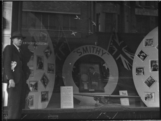 Keywords: SLNSW 28699 Smithy advertised in Horderns windows.jpg en Smithy advertised in Horderns windows 1/7/1946 http //www acmssearch sl nsw gov au/search/itemDetailPaged cgi itemID 28699 item <br/>http //www acmssearch sl nsw gov au/search/itemDetailPaged cgi itemID 37473 album <br/>http //www acmssearch sl nsw gov au/search/itemDetailPaged cgi itemID 395018 collection Creator Sam Hood This image may be used freely without requesting permission The State Library of New South Wales http //www acmssearch sl nsw gov au/search/itemPopLarger cgi itemID 28699 requests acknowledgement that the image is from the collections of the State Library of NSW Photographs 32812 images copied from glass and cellulose nitrate photonegatives The Library first purchased a large collection of negatives from Gladys Hood in 1972 This collection which included nitrate negatives which have subsequently been copied at DG 0N4 NCY 28-61 was transferred to a videodisc in 1991 and each image indexed individually Ted Hood assisted with the indexing; images were also identified using surviving studio registers The videodisc known as the Home Away disc or simply the Hood collection was digitised in 1996 and mounted on the Internet with upgraded index records via the online catalogue in December 1998 Purchased from Gladys Hood 1972 Copyright restrictions may apply - Photographs in this collection created before 1955 are all out of copyright Photographs created after 1955 are in copyright for the life of creator plus 70 years ; Please acknowledge - Mitchell Library State Library of New South Wales and Courtesy copyright holder 395018 Sam Hood photographic collection 1916-ca 1955 Approximately 44 800 negatives ; 7 309 photographic prints ; 3 boxes of textual material ; 6 film reels The Library first purchased a large collection of negatives from Gladys Hood in 1972 This collection which included nitrate negatives which have subsequently been copied at DG 0N4 NCY 28-61 was transferred to a videodisc in 1991 and each image indexed individually Ted Hood assisted with the indexing; images were also identified using surviving studio registers The videodisc known as the Home Away disc or simply the Hood collection was digitised in 1996 and mounted on the Internet with upgraded index records via the online catalogue in December 1998 ; Another collection from Sam Hood's studio was purchased in 1993 from Gladys Hood's descendants This comprised 7300 photoprints PXE 789 and ca 12000 negatives ON 204 Digitisation of important photographs in PXE 789 began Mar 2002 but ON 204 has not been digitised and must be viewed at the Library Samuel J Hood's 1872-1953 claimed to have been born 1870 but the South Australian Birth Index gives date as 20 August 1872 His career as a photographer began in the 1880s ; He ran a successful business in ships portraits these negatives are now held by the Australian National Maritime Museum Sydney and portraits of people in the late nineteenth - early twentieth century The State Library has little representation of this period In 1918 he acquired the Dalny Studio at 124 Pitt Street and began to expand his business into press photography providing photographs for the Sydney Mail the Australasian the Daily Guardian the Daily Telegraph Pictorial the Labor Daily the Sun the Daily News and the Sydney Morning Herald Press photography increasingly came to dominate his business and in 1934 he joined the Labor Daily for a short time as a full-time photographer engaging other staff to look after his studio ; By the mid-1930s most newspapers employed their own photographers and Hood's commissions from the papers began to decline Hood sought other kinds of commissions and won a number of long term advertising and commercial contracts He contributed a number of photographs of Sydney buildings and streets to Building Construction and Australasian Engineer during the late 1930s and early 1940s Hood also had extensive contacts in the entertainment industry who called upon him to document celebrity events and stars as well as theatre advertising Throughout his career he worked at the stock-in-trade for commercial photographers portraits weddings and even funerals ; A number of photographers worked for Dalny Studio some of these include Ernie Bowen Gus Daley Jack Lazern Lethington Maitland as well as Sam's own children Gladys and Ted ; For detailed biographical information about photographer Sam Hood see Sydney exposures through the eyes of Sam Hood his Studio 1925-1950 / Alan Davies Sydney State Library of New South Wales 1991 Out of copyright - Created before 1955 Photographs ; Please acknowledge - Mitchell Library State Library of New South Wales advertising photography; commercial photography; photojournalism 395018 Original item no NCY46/286 yes no PD-Australia PD-1996 Australia Images from the State Library of NSW album 37473 SLNSW media uploaded by User 99of9 Photographs by Sam Hood