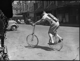 | Keywords: SLNSW 30012 Bike rider Capitol Theatre.jpg en Bike rider Capitol Theatre 8/3/1947 http //www acmssearch sl nsw gov au/search/itemDetailPaged cgi itemID 30012 item <br/>http //www acmssearch sl nsw gov au/search/itemDetailPaged cgi itemID 37473 album <br/>http //www acmssearch sl nsw gov au/search/itemDetailPaged cgi itemID 395018 collection Creator Sam Hood This image may be used freely without requesting permission The State Library of New South Wales http //www acmssearch sl nsw gov au/search/itemPopLarger cgi itemID 30012 requests acknowledgement that the image is from the collections of the State Library of NSW Photographs 32812 images copied from glass and cellulose nitrate photonegatives The Library first purchased a large collection of negatives from Gladys Hood in 1972 This collection which included nitrate negatives which have subsequently been copied at DG 0N4 NCY 28-61 was transferred to a videodisc in 1991 and each image indexed individually Ted Hood assisted with the indexing; images were also identified using surviving studio registers The videodisc known as the Home Away disc or simply the Hood collection was digitised in 1996 and mounted on the Internet with upgraded index records via the online catalogue in December 1998 Purchased from Gladys Hood 1972 Copyright restrictions may apply - Photographs in this collection created before 1955 are all out of copyright Photographs created after 1955 are in copyright for the life of creator plus 70 years ; Please acknowledge - Mitchell Library State Library of New South Wales and Courtesy copyright holder 395018 Sam Hood photographic collection 1916-ca 1955 Approximately 44 800 negatives ; 7 309 photographic prints ; 3 boxes of textual material ; 6 film reels The Library first purchased a large collection of negatives from Gladys Hood in 1972 This collection which included nitrate negatives which have subsequently been copied at DG 0N4 NCY 28-61 was transferred to a videodisc in 1991 and each image indexed individually Ted Hood assisted with the indexing; images were also identified using surviving studio registers The videodisc known as the Home Away disc or simply the Hood collection was digitised in 1996 and mounted on the Internet with upgraded index records via the online catalogue in December 1998 ; Another collection from Sam Hood's studio was purchased in 1993 from Gladys Hood's descendants This comprised 7300 photoprints PXE 789 and ca 12000 negatives ON 204 Digitisation of important photographs in PXE 789 began Mar 2002 but ON 204 has not been digitised and must be viewed at the Library Samuel J Hood's 1872-1953 claimed to have been born 1870 but the South Australian Birth Index gives date as 20 August 1872 His career as a photographer began in the 1880s ; He ran a successful business in ships portraits these negatives are now held by the Australian National Maritime Museum Sydney and portraits of people in the late nineteenth - early twentieth century The State Library has little representation of this period In 1918 he acquired the Dalny Studio at 124 Pitt Street and began to expand his business into press photography providing photographs for the Sydney Mail the Australasian the Daily Guardian the Daily Telegraph Pictorial the Labor Daily the Sun the Daily News and the Sydney Morning Herald Press photography increasingly came to dominate his business and in 1934 he joined the Labor Daily for a short time as a full-time photographer engaging other staff to look after his studio ; By the mid-1930s most newspapers employed their own photographers and Hood's commissions from the papers began to decline Hood sought other kinds of commissions and won a number of long term advertising and commercial contracts He contributed a number of photographs of Sydney buildings and streets to Building Construction and Australasian Engineer during the late 1930s and early 1940s Hood also had extensive contacts in the entertainment industry who called upon him to document celebrity events and stars as well as theatre advertising Throughout his career he worked at the stock-in-trade for commercial photographers portraits weddings and even funerals ; A number of photographers worked for Dalny Studio some of these include Ernie Bowen Gus Daley Jack Lazern Lethington Maitland as well as Sam's own children Gladys and Ted ; For detailed biographical information about photographer Sam Hood see Sydney exposures through the eyes of Sam Hood his Studio 1925-1950 / Alan Davies Sydney State Library of New South Wales 1991 Out of copyright - Created before 1955 Photographs ; Please acknowledge - Mitchell Library State Library of New South Wales advertising photography; commercial photography; photojournalism 395018 Original item no NCY51/271 yes no PD-Australia PD-1996 Australia Images from the State Library of NSW album 37473 SLNSW media uploaded by User 99of9 Photographs by Sam Hood Scanned with Nikon Super Coolscan 4000 ED |