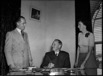 | Keywords: SLNSW 31281 New Lord Mayor Purdue with his secretary Miss Z Burke and the Town Clerk Mr W Burges.jpg en New Lord Mayor Purdue with his secretary Miss Z Burke and the Town Clerk Mr W Burges 11/12/1952 http //www acmssearch sl nsw gov au/search/itemDetailPaged cgi itemID 31281 item <br/>http //www acmssearch sl nsw gov au/search/itemDetailPaged cgi itemID 37473 album <br/>http //www acmssearch sl nsw gov au/search/itemDetailPaged cgi itemID 395018 collection Creator Sam Hood This image may be used freely without requesting permission The State Library of New South Wales http //www acmssearch sl nsw gov au/search/itemPopLarger cgi itemID 31281 requests acknowledgement that the image is from the collections of the State Library of NSW Photographs 32812 images copied from glass and cellulose nitrate photonegatives The Library first purchased a large collection of negatives from Gladys Hood in 1972 This collection which included nitrate negatives which have subsequently been copied at DG 0N4 NCY 28-61 was transferred to a videodisc in 1991 and each image indexed individually Ted Hood assisted with the indexing; images were also identified using surviving studio registers The videodisc known as the Home Away disc or simply the Hood collection was digitised in 1996 and mounted on the Internet with upgraded index records via the online catalogue in December 1998 Purchased from Gladys Hood 1972 Copyright restrictions may apply - Photographs in this collection created before 1955 are all out of copyright Photographs created after 1955 are in copyright for the life of creator plus 70 years ; Please acknowledge - Mitchell Library State Library of New South Wales and Courtesy copyright holder 395018 Sam Hood photographic collection 1916-ca 1955 Approximately 44 800 negatives ; 7 309 photographic prints ; 3 boxes of textual material ; 6 film reels The Library first purchased a large collection of negatives from Gladys Hood in 1972 This collection which included nitrate negatives which have subsequently been copied at DG 0N4 NCY 28-61 was transferred to a videodisc in 1991 and each image indexed individually Ted Hood assisted with the indexing; images were also identified using surviving studio registers The videodisc known as the Home Away disc or simply the Hood collection was digitised in 1996 and mounted on the Internet with upgraded index records via the online catalogue in December 1998 ; Another collection from Sam Hood's studio was purchased in 1993 from Gladys Hood's descendants This comprised 7300 photoprints PXE 789 and ca 12000 negatives ON 204 Digitisation of important photographs in PXE 789 began Mar 2002 but ON 204 has not been digitised and must be viewed at the Library Samuel J Hood's 1872-1953 claimed to have been born 1870 but the South Australian Birth Index gives date as 20 August 1872 His career as a photographer began in the 1880s ; He ran a successful business in ships portraits these negatives are now held by the Australian National Maritime Museum Sydney and portraits of people in the late nineteenth - early twentieth century The State Library has little representation of this period In 1918 he acquired the Dalny Studio at 124 Pitt Street and began to expand his business into press photography providing photographs for the Sydney Mail the Australasian the Daily Guardian the Daily Telegraph Pictorial the Labor Daily the Sun the Daily News and the Sydney Morning Herald Press photography increasingly came to dominate his business and in 1934 he joined the Labor Daily for a short time as a full-time photographer engaging other staff to look after his studio ; By the mid-1930s most newspapers employed their own photographers and Hood's commissions from the papers began to decline Hood sought other kinds of commissions and won a number of long term advertising and commercial contracts He contributed a number of photographs of Sydney buildings and streets to Building Construction and Australasian Engineer during the late 1930s and early 1940s Hood also had extensive contacts in the entertainment industry who called upon him to document celebrity events and stars as well as theatre advertising Throughout his career he worked at the stock-in-trade for commercial photographers portraits weddings and even funerals ; A number of photographers worked for Dalny Studio some of these include Ernie Bowen Gus Daley Jack Lazern Lethington Maitland as well as Sam's own children Gladys and Ted ; For detailed biographical information about photographer Sam Hood see Sydney exposures through the eyes of Sam Hood his Studio 1925-1950 / Alan Davies Sydney State Library of New South Wales 1991 Out of copyright - Created before 1955 Photographs ; Please acknowledge - Mitchell Library State Library of New South Wales advertising photography; commercial photography; photojournalism 395018 Original item no NCY53/300 yes no PD-Australia PD-1996 Australia Images from the State Library of NSW album 37473 SLNSW media uploaded by User 99of9 Photographs by Sam Hood |