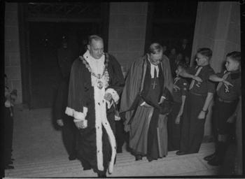 | Keywords: SLNSW 32773 Bishop at City Hall right.jpg en Bishop at City Hall right 1/6/1954 http //www acmssearch sl nsw gov au/search/itemDetailPaged cgi itemID 32773 item <br/>http //www acmssearch sl nsw gov au/search/itemDetailPaged cgi itemID 37473 album <br/>http //www acmssearch sl nsw gov au/search/itemDetailPaged cgi itemID 395018 collection Creator Sam Hood This image may be used freely without requesting permission The State Library of New South Wales http //www acmssearch sl nsw gov au/search/itemPopLarger cgi itemID 32773 requests acknowledgement that the image is from the collections of the State Library of NSW Photographs 32812 images copied from glass and cellulose nitrate photonegatives The Library first purchased a large collection of negatives from Gladys Hood in 1972 This collection which included nitrate negatives which have subsequently been copied at DG 0N4 NCY 28-61 was transferred to a videodisc in 1991 and each image indexed individually Ted Hood assisted with the indexing; images were also identified using surviving studio registers The videodisc known as the Home Away disc or simply the Hood collection was digitised in 1996 and mounted on the Internet with upgraded index records via the online catalogue in December 1998 Purchased from Gladys Hood 1972 Copyright restrictions may apply - Photographs in this collection created before 1955 are all out of copyright Photographs created after 1955 are in copyright for the life of creator plus 70 years ; Please acknowledge - Mitchell Library State Library of New South Wales and Courtesy copyright holder 395018 Sam Hood photographic collection 1916-ca 1955 Approximately 44 800 negatives ; 7 309 photographic prints ; 3 boxes of textual material ; 6 film reels The Library first purchased a large collection of negatives from Gladys Hood in 1972 This collection which included nitrate negatives which have subsequently been copied at DG 0N4 NCY 28-61 was transferred to a videodisc in 1991 and each image indexed individually Ted Hood assisted with the indexing; images were also identified using surviving studio registers The videodisc known as the Home Away disc or simply the Hood collection was digitised in 1996 and mounted on the Internet with upgraded index records via the online catalogue in December 1998 ; Another collection from Sam Hood's studio was purchased in 1993 from Gladys Hood's descendants This comprised 7300 photoprints PXE 789 and ca 12000 negatives ON 204 Digitisation of important photographs in PXE 789 began Mar 2002 but ON 204 has not been digitised and must be viewed at the Library Samuel J Hood's 1872-1953 claimed to have been born 1870 but the South Australian Birth Index gives date as 20 August 1872 His career as a photographer began in the 1880s ; He ran a successful business in ships portraits these negatives are now held by the Australian National Maritime Museum Sydney and portraits of people in the late nineteenth - early twentieth century The State Library has little representation of this period In 1918 he acquired the Dalny Studio at 124 Pitt Street and began to expand his business into press photography providing photographs for the Sydney Mail the Australasian the Daily Guardian the Daily Telegraph Pictorial the Labor Daily the Sun the Daily News and the Sydney Morning Herald Press photography increasingly came to dominate his business and in 1934 he joined the Labor Daily for a short time as a full-time photographer engaging other staff to look after his studio ; By the mid-1930s most newspapers employed their own photographers and Hood's commissions from the papers began to decline Hood sought other kinds of commissions and won a number of long term advertising and commercial contracts He contributed a number of photographs of Sydney buildings and streets to Building Construction and Australasian Engineer during the late 1930s and early 1940s Hood also had extensive contacts in the entertainment industry who called upon him to document celebrity events and stars as well as theatre advertising Throughout his career he worked at the stock-in-trade for commercial photographers portraits weddings and even funerals ; A number of photographers worked for Dalny Studio some of these include Ernie Bowen Gus Daley Jack Lazern Lethington Maitland as well as Sam's own children Gladys and Ted ; For detailed biographical information about photographer Sam Hood see Sydney exposures through the eyes of Sam Hood his Studio 1925-1950 / Alan Davies Sydney State Library of New South Wales 1991 Out of copyright - Created before 1955 Photographs ; Please acknowledge - Mitchell Library State Library of New South Wales advertising photography; commercial photography; photojournalism 395018 Original item no NCY54/184 yes no PD-Australia PD-1996 Australia Images from the State Library of NSW album 37473 SLNSW media uploaded by User 99of9 Photographs by Sam Hood |