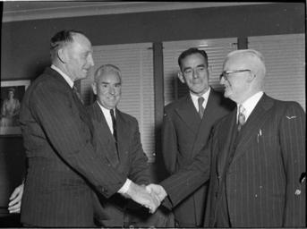 | Keywords: SLNSW 33600 Deputy President Cr WL Quinn congratulates President Cr WL Quinn on his election Centre Cr W Wilson left Cr G Durie.jpg en Deputy President Cr WL Quinn congratulates President Cr WL Quinn on his election Centre Cr W Wilson left Cr G Durie 6/12/1955 http //www acmssearch sl nsw gov au/search/itemDetailPaged cgi itemID 33600 item <br/>http //www acmssearch sl nsw gov au/search/itemDetailPaged cgi itemID 37473 album <br/>http //www acmssearch sl nsw gov au/search/itemDetailPaged cgi itemID 395018 collection Creator Sam Hood This image may be used freely without requesting permission The State Library of New South Wales http //www acmssearch sl nsw gov au/search/itemPopLarger cgi itemID 33600 requests acknowledgement that the image is from the collections of the State Library of NSW Photographs 32812 images copied from glass and cellulose nitrate photonegatives The Library first purchased a large collection of negatives from Gladys Hood in 1972 This collection which included nitrate negatives which have subsequently been copied at DG 0N4 NCY 28-61 was transferred to a videodisc in 1991 and each image indexed individually Ted Hood assisted with the indexing; images were also identified using surviving studio registers The videodisc known as the Home Away disc or simply the Hood collection was digitised in 1996 and mounted on the Internet with upgraded index records via the online catalogue in December 1998 Purchased from Gladys Hood 1972 Copyright restrictions may apply - Photographs in this collection created before 1955 are all out of copyright Photographs created after 1955 are in copyright for the life of creator plus 70 years ; Please acknowledge - Mitchell Library State Library of New South Wales and Courtesy copyright holder 395018 Sam Hood photographic collection 1916-ca 1955 Approximately 44 800 negatives ; 7 309 photographic prints ; 3 boxes of textual material ; 6 film reels The Library first purchased a large collection of negatives from Gladys Hood in 1972 This collection which included nitrate negatives which have subsequently been copied at DG 0N4 NCY 28-61 was transferred to a videodisc in 1991 and each image indexed individually Ted Hood assisted with the indexing; images were also identified using surviving studio registers The videodisc known as the Home Away disc or simply the Hood collection was digitised in 1996 and mounted on the Internet with upgraded index records via the online catalogue in December 1998 ; Another collection from Sam Hood's studio was purchased in 1993 from Gladys Hood's descendants This comprised 7300 photoprints PXE 789 and ca 12000 negatives ON 204 Digitisation of important photographs in PXE 789 began Mar 2002 but ON 204 has not been digitised and must be viewed at the Library Samuel J Hood's 1872-1953 claimed to have been born 1870 but the South Australian Birth Index gives date as 20 August 1872 His career as a photographer began in the 1880s ; He ran a successful business in ships portraits these negatives are now held by the Australian National Maritime Museum Sydney and portraits of people in the late nineteenth - early twentieth century The State Library has little representation of this period In 1918 he acquired the Dalny Studio at 124 Pitt Street and began to expand his business into press photography providing photographs for the Sydney Mail the Australasian the Daily Guardian the Daily Telegraph Pictorial the Labor Daily the Sun the Daily News and the Sydney Morning Herald Press photography increasingly came to dominate his business and in 1934 he joined the Labor Daily for a short time as a full-time photographer engaging other staff to look after his studio ; By the mid-1930s most newspapers employed their own photographers and Hood's commissions from the papers began to decline Hood sought other kinds of commissions and won a number of long term advertising and commercial contracts He contributed a number of photographs of Sydney buildings and streets to Building Construction and Australasian Engineer during the late 1930s and early 1940s Hood also had extensive contacts in the entertainment industry who called upon him to document celebrity events and stars as well as theatre advertising Throughout his career he worked at the stock-in-trade for commercial photographers portraits weddings and even funerals ; A number of photographers worked for Dalny Studio some of these include Ernie Bowen Gus Daley Jack Lazern Lethington Maitland as well as Sam's own children Gladys and Ted ; For detailed biographical information about photographer Sam Hood see Sydney exposures through the eyes of Sam Hood his Studio 1925-1950 / Alan Davies Sydney State Library of New South Wales 1991 Out of copyright - Created before 1955 Photographs ; Please acknowledge - Mitchell Library State Library of New South Wales advertising photography; commercial photography; photojournalism 395018 Original item no NCY55/408 yes no PD-Australia PD-1996 Australia Images from the State Library of NSW album 37473 SLNSW media uploaded by User 99of9 Photographs by Sam Hood |