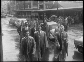 | Keywords: SLNSW 34262 Unions march on Coal Board refusal to work as a protest against the pending closure of Stockington ie Stockton No 1 and Bellbird Colliery.jpg en Unions march on Coal Board refusal to work as a protest against the pending closure of Stockington i e Stockton No 1 and Bellbird Colliery 1/3/1956 http //www acmssearch sl nsw gov au/search/itemDetailPaged cgi itemID 34262 item <br/>http //www acmssearch sl nsw gov au/search/itemDetailPaged cgi itemID 37473 album <br/>http //www acmssearch sl nsw gov au/search/itemDetailPaged cgi itemID 395018 collection Creator Sam Hood This image may be used freely without requesting permission The State Library of New South Wales http //www acmssearch sl nsw gov au/search/itemPopLarger cgi itemID 34262 requests acknowledgement that the image is from the collections of the State Library of NSW Photographs 32812 images copied from glass and cellulose nitrate photonegatives The Library first purchased a large collection of negatives from Gladys Hood in 1972 This collection which included nitrate negatives which have subsequently been copied at DG 0N4 NCY 28-61 was transferred to a videodisc in 1991 and each image indexed individually Ted Hood assisted with the indexing; images were also identified using surviving studio registers The videodisc known as the Home Away disc or simply the Hood collection was digitised in 1996 and mounted on the Internet with upgraded index records via the online catalogue in December 1998 Purchased from Gladys Hood 1972 Copyright restrictions may apply - Photographs in this collection created before 1955 are all out of copyright Photographs created after 1955 are in copyright for the life of creator plus 70 years ; Please acknowledge - Mitchell Library State Library of New South Wales and Courtesy copyright holder 395018 Sam Hood photographic collection 1916-ca 1955 Approximately 44 800 negatives ; 7 309 photographic prints ; 3 boxes of textual material ; 6 film reels The Library first purchased a large collection of negatives from Gladys Hood in 1972 This collection which included nitrate negatives which have subsequently been copied at DG 0N4 NCY 28-61 was transferred to a videodisc in 1991 and each image indexed individually Ted Hood assisted with the indexing; images were also identified using surviving studio registers The videodisc known as the Home Away disc or simply the Hood collection was digitised in 1996 and mounted on the Internet with upgraded index records via the online catalogue in December 1998 ; Another collection from Sam Hood's studio was purchased in 1993 from Gladys Hood's descendants This comprised 7300 photoprints PXE 789 and ca 12000 negatives ON 204 Digitisation of important photographs in PXE 789 began Mar 2002 but ON 204 has not been digitised and must be viewed at the Library Samuel J Hood's 1872-1953 claimed to have been born 1870 but the South Australian Birth Index gives date as 20 August 1872 His career as a photographer began in the 1880s ; He ran a successful business in ships portraits these negatives are now held by the Australian National Maritime Museum Sydney and portraits of people in the late nineteenth - early twentieth century The State Library has little representation of this period In 1918 he acquired the Dalny Studio at 124 Pitt Street and began to expand his business into press photography providing photographs for the Sydney Mail the Australasian the Daily Guardian the Daily Telegraph Pictorial the Labor Daily the Sun the Daily News and the Sydney Morning Herald Press photography increasingly came to dominate his business and in 1934 he joined the Labor Daily for a short time as a full-time photographer engaging other staff to look after his studio ; By the mid-1930s most newspapers employed their own photographers and Hood's commissions from the papers began to decline Hood sought other kinds of commissions and won a number of long term advertising and commercial contracts He contributed a number of photographs of Sydney buildings and streets to Building Construction and Australasian Engineer during the late 1930s and early 1940s Hood also had extensive contacts in the entertainment industry who called upon him to document celebrity events and stars as well as theatre advertising Throughout his career he worked at the stock-in-trade for commercial photographers portraits weddings and even funerals ; A number of photographers worked for Dalny Studio some of these include Ernie Bowen Gus Daley Jack Lazern Lethington Maitland as well as Sam's own children Gladys and Ted ; For detailed biographical information about photographer Sam Hood see Sydney exposures through the eyes of Sam Hood his Studio 1925-1950 / Alan Davies Sydney State Library of New South Wales 1991 Out of copyright - Created before 1955 Photographs ; Please acknowledge - Mitchell Library State Library of New South Wales advertising photography; commercial photography; photojournalism 395018 Original item no NCY55/559 yes no PD-Australia PD-1996 Australia Images from the State Library of NSW album 37473 SLNSW media uploaded by User 99of9 Photographs by Sam Hood |