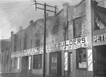 | Keywords: SLNSW 42309 Fire at Peters Bryden Peters Motor Body Works.jpg en Fire at Peters Bryden Peters Motor Body Works 20 July 1934 http //www acmssearch sl nsw gov au/search/itemDetailPaged cgi itemID 42309 item <br/>http //www acmssearch sl nsw gov au/search/itemDetailPaged cgi itemID 37473 album <br/>http //www acmssearch sl nsw gov au/search/itemDetailPaged cgi itemID 395018 collection Hood Ted 1911-2000 This image may be used freely without requesting permission The State Library of New South Wales http //www acmssearch sl nsw gov au/search/itemPopLarger cgi itemID 42309 requests acknowledgement that the image is from the collections of the State Library of NSW Photographs 32812 images copied from glass and cellulose nitrate photonegatives The Library first purchased a large collection of negatives from Gladys Hood in 1972 This collection which included nitrate negatives which have subsequently been copied at DG 0N4 NCY 28-61 was transferred to a videodisc in 1991 and each image indexed individually Ted Hood assisted with the indexing; images were also identified using surviving studio registers The videodisc known as the Home Away disc or simply the Hood collection was digitised in 1996 and mounted on the Internet with upgraded index records via the online catalogue in December 1998 Purchased from Gladys Hood 1972 Copyright restrictions may apply - Photographs in this collection created before 1955 are all out of copyright Photographs created after 1955 are in copyright for the life of creator plus 70 years ; Please acknowledge - Mitchell Library State Library of New South Wales and Courtesy copyright holder 395018 Sam Hood photographic collection 1916-ca 1955 Approximately 44 800 negatives ; 7 309 photographic prints ; 3 boxes of textual material ; 6 film reels The Library first purchased a large collection of negatives from Gladys Hood in 1972 This collection which included nitrate negatives which have subsequently been copied at DG 0N4 NCY 28-61 was transferred to a videodisc in 1991 and each image indexed individually Ted Hood assisted with the indexing; images were also identified using surviving studio registers The videodisc known as the Home Away disc or simply the Hood collection was digitised in 1996 and mounted on the Internet with upgraded index records via the online catalogue in December 1998 ; Another collection from Sam Hood's studio was purchased in 1993 from Gladys Hood's descendants This comprised 7300 photoprints PXE 789 and ca 12000 negatives ON 204 Digitisation of important photographs in PXE 789 began Mar 2002 but ON 204 has not been digitised and must be viewed at the Library Samuel J Hood's 1872-1953 claimed to have been born 1870 but the South Australian Birth Index gives date as 20 August 1872 His career as a photographer began in the 1880s ; He ran a successful business in ships portraits these negatives are now held by the Australian National Maritime Museum Sydney and portraits of people in the late nineteenth - early twentieth century The State Library has little representation of this period In 1918 he acquired the Dalny Studio at 124 Pitt Street and began to expand his business into press photography providing photographs for the Sydney Mail the Australasian the Daily Guardian the Daily Telegraph Pictorial the Labor Daily the Sun the Daily News and the Sydney Morning Herald Press photography increasingly came to dominate his business and in 1934 he joined the Labor Daily for a short time as a full-time photographer engaging other staff to look after his studio ; By the mid-1930s most newspapers employed their own photographers and Hood's commissions from the papers began to decline Hood sought other kinds of commissions and won a number of long term advertising and commercial contracts He contributed a number of photographs of Sydney buildings and streets to Building Construction and Australasian Engineer during the late 1930s and early 1940s Hood also had extensive contacts in the entertainment industry who called upon him to document celebrity events and stars as well as theatre advertising Throughout his career he worked at the stock-in-trade for commercial photographers portraits weddings and even funerals ; A number of photographers worked for Dalny Studio some of these include Ernie Bowen Gus Daley Jack Lazern Lethington Maitland as well as Sam's own children Gladys and Ted ; For detailed biographical information about photographer Sam Hood see Sydney exposures through the eyes of Sam Hood his Studio 1925-1950 / Alan Davies Sydney State Library of New South Wales 1991 Out of copyright - Created before 1955 Photographs ; Please acknowledge - Mitchell Library State Library of New South Wales advertising photography; commercial photography; photojournalism 395018 Original item no DG ON4/298 yes no PD-Australia PD-1996 Australia Images from the State Library of NSW album 37473 SLNSW media uploaded by User 99of9 Photographs by Sam Hood |
