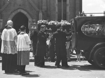 | Keywords: SLNSW 43453 Catholic funeral service at St Mary Immaculate Church Charing Cross.jpg en Catholic funeral service at St Mary Immaculate Church Charing Cross s 1930 http //www acmssearch sl nsw gov au/search/itemDetailPaged cgi itemID 43453 item <br/>http //www acmssearch sl nsw gov au/search/itemDetailPaged cgi itemID 37473 album <br/>http //www acmssearch sl nsw gov au/search/itemDetailPaged cgi itemID 395018 collection Creator Sam Hood This image may be used freely without requesting permission The State Library of New South Wales http //www acmssearch sl nsw gov au/search/itemPopLarger cgi itemID 43453 requests acknowledgement that the image is from the collections of the State Library of NSW User 99of9/SLNSW_extra_metadata_template 43453 Catholic funeral service at St Mary Immaculate Church Charing Cross Home and Away - 1447 1930s Photographs 32812 images copied from glass and cellulose nitrate photonegatives The Library first purchased a large collection of negatives from Gladys Hood in 1972 This collection which included nitrate negatives which have subsequently been copied at DG 0N4 NCY 28-61 was transferred to a videodisc in 1991 and each image indexed individually Ted Hood assisted with the indexing; images were also identified using surviving studio registers The videodisc known as the Home Away disc or simply the Hood collection was digitised in 1996 and mounted on the Internet with upgraded index records via the online catalogue in December 1998 Purchased from Gladys Hood 1972 Copyright restrictions may apply - Photographs in this collection created before 1955 are all out of copyright Photographs created after 1955 are in copyright for the life of creator plus 70 years ; Please acknowledge - Mitchell Library State Library of New South Wales and Courtesy copyright holder 395018 Sam Hood photographic collection 1916-ca 1955 Approximately 44 800 negatives ; 7 309 photographic prints ; 3 boxes of textual material ; 6 film reels The Library first purchased a large collection of negatives from Gladys Hood in 1972 This collection which included nitrate negatives which have subsequently been copied at DG 0N4 NCY 28-61 was transferred to a videodisc in 1991 and each image indexed individually Ted Hood assisted with the indexing; images were also identified using surviving studio registers The videodisc known as the Home Away disc or simply the Hood collection was digitised in 1996 and mounted on the Internet with upgraded index records via the online catalogue in December 1998 ; Another collection from Sam Hood's studio was purchased in 1993 from Gladys Hood's descendants This comprised 7300 photoprints PXE 789 and ca 12000 negatives ON 204 Digitisation of important photographs in PXE 789 began Mar 2002 but ON 204 has not been digitised and must be viewed at the Library Samuel J Hood's 1872-1953 claimed to have been born 1870 but the South Australian Birth Index gives date as 20 August 1872 His career as a photographer began in the 1880s ; He ran a successful business in ships portraits these negatives are now held by the Australian National Maritime Museum Sydney and portraits of people in the late nineteenth - early twentieth century The State Library has little representation of this period In 1918 he acquired the Dalny Studio at 124 Pitt Street and began to expand his business into press photography providing photographs for the Sydney Mail the Australasian the Daily Guardian the Daily Telegraph Pictorial the Labor Daily the Sun the Daily News and the Sydney Morning Herald Press photography increasingly came to dominate his business and in 1934 he joined the Labor Daily for a short time as a full-time photographer engaging other staff to look after his studio ; By the mid-1930s most newspapers employed their own photographers and Hood's commissions from the papers began to decline Hood sought other kinds of commissions and won a number of long term advertising and commercial contracts He contributed a number of photographs of Sydney buildings and streets to Building Construction and Australasian Engineer during the late 1930s and early 1940s Hood also had extensive contacts in the entertainment industry who called upon him to document celebrity events and stars as well as theatre advertising Throughout his career he worked at the stock-in-trade for commercial photographers portraits weddings and even funerals ; A number of photographers worked for Dalny Studio some of these include Ernie Bowen Gus Daley Jack Lazern Lethington Maitland as well as Sam's own children Gladys and Ted ; For detailed biographical information about photographer Sam Hood see Sydney exposures through the eyes of Sam Hood his Studio 1925-1950 / Alan Davies Sydney State Library of New South Wales 1991 Out of copyright - Created before 1955 Photographs ; Please acknowledge - Mitchell Library State Library of New South Wales advertising photography; commercial photography; photojournalism 395018 Original item no DG ON4/1447 yes no PD-Australia PD-1996 Australia Images from the State Library of NSW album 37473 SLNSW media uploaded by User 99of9 Photographs by Sam Hood |