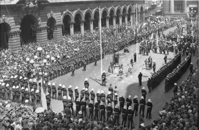 | Keywords: SLNSW 51062 Anzac Day ceremony at Cenotaph Martin Place.jpg en Anzac Day ceremony at Cenotaph Martin Place s 1930 http //www acmssearch sl nsw gov au/search/itemDetailPaged cgi itemID 51062 item <br/>http //www acmssearch sl nsw gov au/search/itemDetailPaged cgi itemID 37473 album <br/>http //www acmssearch sl nsw gov au/search/itemDetailPaged cgi itemID 395018 collection Hood Ted 1911-2000 This image may be used freely without requesting permission The State Library of New South Wales http //www acmssearch sl nsw gov au/search/itemPopLarger cgi itemID 51062 requests acknowledgement that the image is from the collections of the State Library of NSW Photographs 32812 images copied from glass and cellulose nitrate photonegatives The Library first purchased a large collection of negatives from Gladys Hood in 1972 This collection which included nitrate negatives which have subsequently been copied at DG 0N4 NCY 28-61 was transferred to a videodisc in 1991 and each image indexed individually Ted Hood assisted with the indexing; images were also identified using surviving studio registers The videodisc known as the Home Away disc or simply the Hood collection was digitised in 1996 and mounted on the Internet with upgraded index records via the online catalogue in December 1998 Purchased from Gladys Hood 1972 Copyright restrictions may apply - Photographs in this collection created before 1955 are all out of copyright Photographs created after 1955 are in copyright for the life of creator plus 70 years ; Please acknowledge - Mitchell Library State Library of New South Wales and Courtesy copyright holder 395018 Sam Hood photographic collection 1916-ca 1955 Approximately 44 800 negatives ; 7 309 photographic prints ; 3 boxes of textual material ; 6 film reels The Library first purchased a large collection of negatives from Gladys Hood in 1972 This collection which included nitrate negatives which have subsequently been copied at DG 0N4 NCY 28-61 was transferred to a videodisc in 1991 and each image indexed individually Ted Hood assisted with the indexing; images were also identified using surviving studio registers The videodisc known as the Home Away disc or simply the Hood collection was digitised in 1996 and mounted on the Internet with upgraded index records via the online catalogue in December 1998 ; Another collection from Sam Hood's studio was purchased in 1993 from Gladys Hood's descendants This comprised 7300 photoprints PXE 789 and ca 12000 negatives ON 204 Digitisation of important photographs in PXE 789 began Mar 2002 but ON 204 has not been digitised and must be viewed at the Library Samuel J Hood's 1872-1953 claimed to have been born 1870 but the South Australian Birth Index gives date as 20 August 1872 His career as a photographer began in the 1880s ; He ran a successful business in ships portraits these negatives are now held by the Australian National Maritime Museum Sydney and portraits of people in the late nineteenth - early twentieth century The State Library has little representation of this period In 1918 he acquired the Dalny Studio at 124 Pitt Street and began to expand his business into press photography providing photographs for the Sydney Mail the Australasian the Daily Guardian the Daily Telegraph Pictorial the Labor Daily the Sun the Daily News and the Sydney Morning Herald Press photography increasingly came to dominate his business and in 1934 he joined the Labor Daily for a short time as a full-time photographer engaging other staff to look after his studio ; By the mid-1930s most newspapers employed their own photographers and Hood's commissions from the papers began to decline Hood sought other kinds of commissions and won a number of long term advertising and commercial contracts He contributed a number of photographs of Sydney buildings and streets to Building Construction and Australasian Engineer during the late 1930s and early 1940s Hood also had extensive contacts in the entertainment industry who called upon him to document celebrity events and stars as well as theatre advertising Throughout his career he worked at the stock-in-trade for commercial photographers portraits weddings and even funerals ; A number of photographers worked for Dalny Studio some of these include Ernie Bowen Gus Daley Jack Lazern Lethington Maitland as well as Sam's own children Gladys and Ted ; For detailed biographical information about photographer Sam Hood see Sydney exposures through the eyes of Sam Hood his Studio 1925-1950 / Alan Davies Sydney State Library of New South Wales 1991 Out of copyright - Created before 1955 Photographs ; Please acknowledge - Mitchell Library State Library of New South Wales advertising photography; commercial photography; photojournalism 395018 Original item no DG ON4/2734 yes no PD-Australia PD-1996 Australia Images from the State Library of NSW album 37473 SLNSW media uploaded by User 99of9 Photographs by Sam Hood |