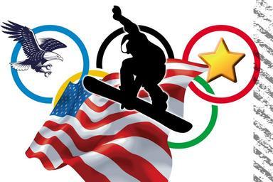 Keywords: slopestyle gold medal sochi 2014 russia olympiad winter olympics competition snwowboarder freestyle jump olympic rings grunge flag usa white tailed eagle star