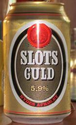 Keywords: Slots Gold Beer.jpg en Slots Gold beer can of the Danish brewery Maribo Bryghus sv Slots Guld-ölburk från det danska bryggeriet Maribo Bryghus own Mr Bullitt 2010-08-07 Beers of Denmark Lager beer Beer cans