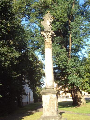 Keywords: Sloup u kostela.JPG cs Sloup se sochou P Marie u kostela ve Sloupu v Čechách kulturní památka own Zákupák 2012-09-10 Statues in Sloup v Čechách Cultural monuments in Sloup v Čechách Náměstí T G Masaryka Sloup v Čechách