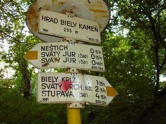 | Keywords: Slovakia-Biely kamen-00.jpg Slovensko zrúcanina hradu Biely Kameň - turistická značka Slovakia ruins of the Biely Kamen castle 107-431/1 Own 2006-09-24 Ladislav Kováč Biely Kameň Hiking and footpath signs in Slovakia Hiking trail 8103 in Slovakia |