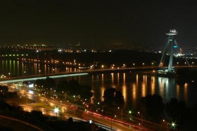 Keywords: slovakia bratislava night bridge river danube light trip dark ufo