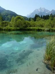 Keywords: slovenia mountains lake water clear landscape cold trees distant view sunny nature panorama