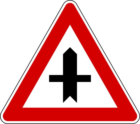 Keywords: Slovenia road sign I-27.svg en Crossing with minor road sl Križišče s stransko cesto pod pravim kotom 2014-05-10 Highway Code Government of Slovenia PD-Slovenia-exempt Diagrams of road signs of Slovenia