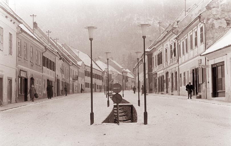 Keywords: Slovenske Konjice pozimi 1961 (3).jpg Slovenske Konjice pozimi 272162 1961-01-27 creator Jože Gal PD-Slovenia 1961 in Slovenia Black and white photographs of Slovenske Konjice Streets in Slovenske Konjice Snowy roads in Slovenia Snow-covered roofs in Slovenia Pedestrians in Slovenske Konjice No parking signs in Slovenia Street lights in Slovenia Photographs by Jože Gal Keep right road signs in Slovenia