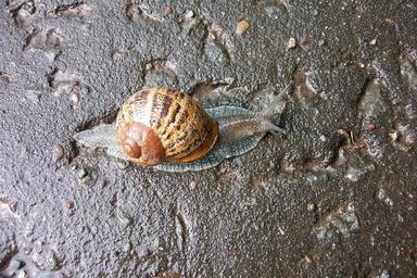 Keywords: slug slow animal nature snail shell brown garden close-up isolated wildlife wet slippery crawl
