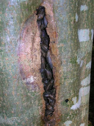 | Keywords: Slugs in Sun Scald fissure.JPG en A Sun Scald fissure with dormant slugs Lehmannia sp family Limacidae Eglinton North Ayrshire Scotland Own Rosser1954 Roger Griffith 2009-09-10 Sun scald flora Fraxinus excelsior Diseases and disorders of Fraxinus Lehmannia Bark |