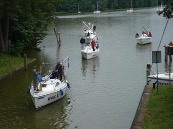Keywords: Sluza Guzanka.03.jpg pl Śluza Guzianka Jachty wpływają do śluzy own Duży Bartek 2009-06-13 Śluza Guzianka