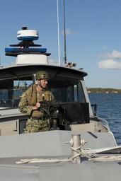| Keywords: Small boat drill, RIMPAC 2014 140718-N-WX378-011.jpg en Master-at-Arms 2nd Class Josh Rognlie assigned to Coastal Riverine Squadron CORIVRON 11 mans a 50-caliber machine gun during a small boat approach drill on the North Ford Island Channel during Rim of the Pacific RIMPAC Exercise 2014 Twenty-two nations 49 ships and six submarines more than 200 aircraft and 25 000 personnel are participating in RIMPAC from June 26 to Aug 1 in and around the Hawaiian Islands and Southern California The world's largest international maritime exercise RIMPAC provides a unique training opportunity that helps participants foster and sustain the cooperative relationships that are critical to ensuring the safety of sea lanes and security on the world's oceans RIMPAC 2014 is the 24th exercise in the series that began in 1971 U S Navy photo by Mass Communication Specialist 2nd Class Bryan M Ilyankoff/Released 2014-07-18 Petty Officer 2nd Class Bryan Ilyankoff https //www dvidshub net/image/1454794 140718-N-WX378-011 2014-07-19 21 21 JOINT BASE PEARL HARBOR-HICKAM HI US PD-USGov-Military-Navy Ships in Pearl Harbor RIMPAC 2014 Images from DoD uploaded by Fæ |