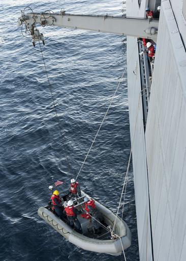 | Keywords: Small boat operations 131211-N-JU810-040.jpg en Sailors assigned to the deck department aboard the San Antonio-class amphibious transport dock ship USS Anchorage LPD 23 man the rigid hull inflatable boat during small boat operations U S Navy photo by Mass Communication Specialist 1st Class Aramis X Ramirez/Released 2013-12-11 Petty Officer 2nd Class Aramis Ramirez https //www dvidshub net/image/1142736 131211-N-JU810-040 2013-12-20 19 32 SAN DIEGO CA US PD-USGov-Military-Navy USS Anchorage LPD-23 Images from DoD uploaded by Fæ |