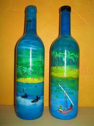 Keywords: small business bottle painting paint handmade art beauty wool hobby collection decoration gift green picture fisher palms tropic nature