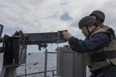 | Keywords: Small craft attack team live fire drill 160225-N-RM689-289.jpg en 160225-N-RM689-289 SOUTH CHINA SEA Feb 25 2016 - Culinary Specialist 2nd Class Edward Orsak assigned to amphibious dock landing ship USS Ashland LSD 48 shoots the 50-caliber machine gun during a small craft attack team SCAT live fire drill Ashland is assigned to the Bonhomme Richard Amphibious Ready Group BHRARG and is conducting a routine patrol in the 7th Fleet area of responsibility U S Navy photo by Mass Communication Specialist Seaman Kelsey L Adams/Released <br>Unit Navy Public Affairs Support Element West 2016-02-25 Seaman Kelsey Adams https //www dvidshub net/image/2428786/small-craft-attack-team-live-fire-drill 160225-N-RM689-289 2016-02-28 04 46 USS ASHLAND SOUTH CHINA SEA PD-USGov-Military-Navy USS Ashland LSD-48 Images from DoD uploaded by Fæ |