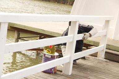 Keywords: small fresh lake portrait wire mesh fence painting worker white color