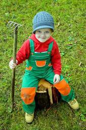Keywords: small gardener garden clothing dress rakes season autumn spring summer people boy kid child young labor maintenance