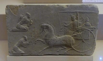 | Keywords: Small horse cart with calash and drape, China, collected at Yihe, Pengzhou City, Eastern Han dynasty, 25-220 AD, tomb tile - Sichuan Provincial Museum - Chengdu, China - DSC04838.jpg en Exhibit in the Sichuan Provincial Museum 四 博物院 also known as the Sichuan Museum 251 Huanhua S Road Chengdu Sichuan China Photography was permitted in the museum without restriction This work is old enough so that it is in the public domain 2015-09-24 03 54 50 own Daderot other versions PD-old-100 cc-zero Tomb bricks of the Eastern Han Dynasty in the Sichuan Provincial Museum Carriages of the Eastern Han Dynasty |