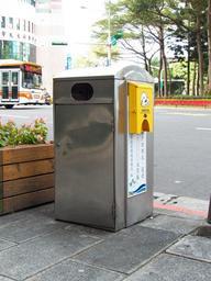 | Keywords: Small Street Trash Bin of Taipei City 20121229.JPG zh-tw 臺北市環 小型人行道垃 桶,體積小,開口低,不易打開 但是投擲不易,容量 限, 要經常清運 旁附清便袋供應箱, 於臺北市 山 民生 路五段民生 環外 2012-12-29 15 26 56 Own 玄史生 Trash bins in Taiwan Minsheng Community Taipei 玄史生写 文庫 Taken with Kodak EasyShare Z990 Uploaded with UploadWizard cc-zero |