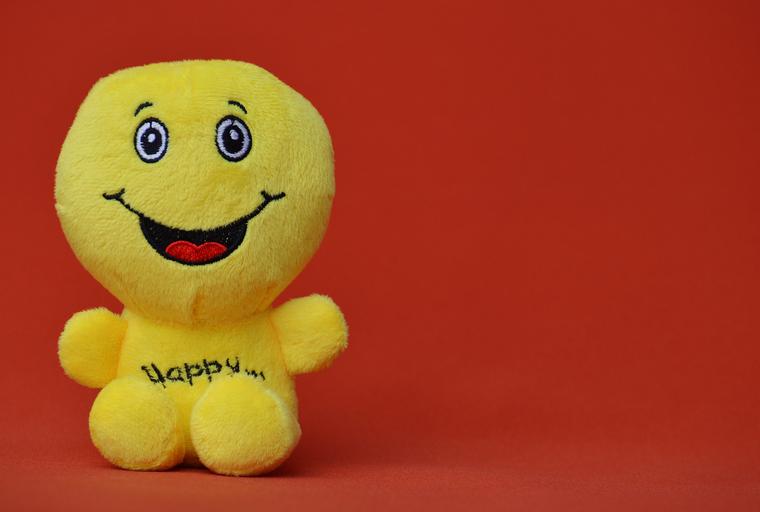 Keywords: smiley laugh funny emoticon emotion yellow green cheerful joy cute sweet good mood smile day start beginning positive courage life is beautiful happy happiness joy of life laughing face frohnatur pep talk keep smiling plush