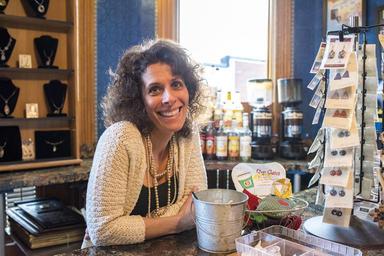 Keywords: smiling woman coffee shop cafe coffee shop caucasian smiling happy female woman drink people indoors adult jewelry casual lifestyle artsy hipster indie unique bohemian colorful