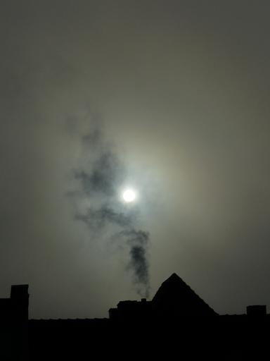 Keywords: smoke fog colourless slurry sun blacked out night creepy spooky gloomy witching hour darkness pollution heat fireplace