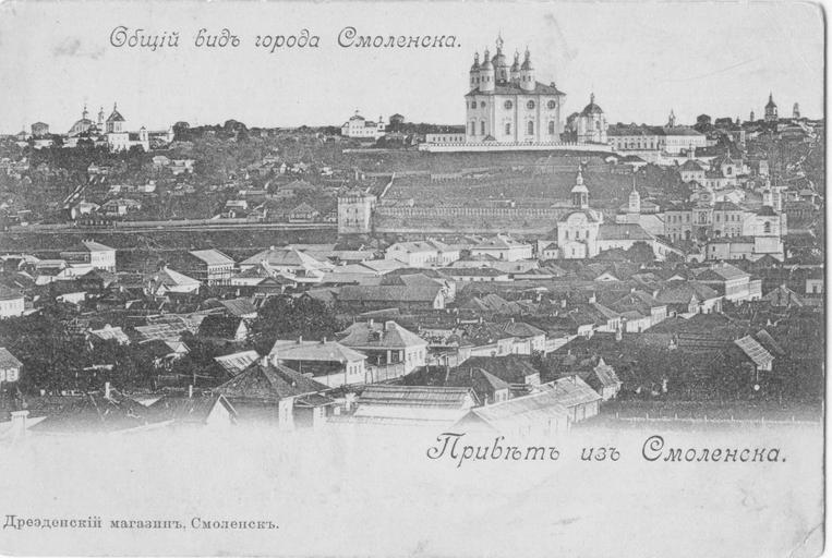 | Keywords: Smolensk View 27.jpg en Panorama of the city of Smolensk from the Cathedral and the mountain fortress wall ru Пано ама го ода Смоленска с Собо ной го ой и к епостной стеной О игинальная отк ытка Д езденский магазин Смоленск before 1917 года PD-RusEmpire 20th-century postcards of Russia Postcards of Smolensk |