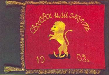 | Keywords: Smolyan 1903.jpg en The banner of the insurgents of the Preobrazhenie uprising in the Central Rhodopes area 1903 bg Бойно знаме на въстаниците от Ахъчелебийско 1903 г Ушито е п ез 1898 г от учителките Тота Дончева Стана Велева и Жека Кефилска П ез 1903 г До а Тодо ова Шишманова и а ия Стоилова Шишкова допълват с везмо 1903 Знамена от освободителното движение в акедония и Од инска Т акия о з полк Иван Иванов Тота Дончева 1898 не Пази се в ВИ а лицевата му ст ана е извезан изп авен ко онован въо ъжен лъв стъпил въ ху полумесец ад лъва е поставен еволюционният девиз Свобода или смъ ть а под него аб евиату ата К Р А естен Комитет Родопи Ахъчелебийски а об атната ст ана в полук ъг е извезан надпис Цент ални Родопи PD-old Banners History of Smolyan Historical flags of Bulgaria Ilinden-Preobrazhenie Uprising Military flags of Bulgaria Culture of Smolyan |