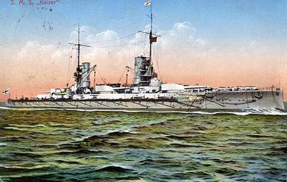 | Keywords: SMS Kaiser - postcard.jpg en Postcard dated 11 5 1914 Title S M S Kaiser de Postkarte datiert 11 5 1914 Titel S M S Kaiser private collection of Wolfgang Sauber Xenophon anonymous 03 11 2008 PD-1923 anonymous-EU Old military postcards of Germany SMS Kaiser ship 1912 Postcards of ships of Germany |