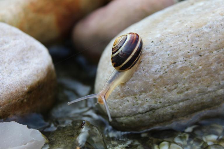 Keywords: snail animal reptile mollusk shell nature stone water garden slowly