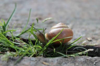 Keywords: snail animal reptile shell spiral probe grass green stone nature garden mollusk slowly close