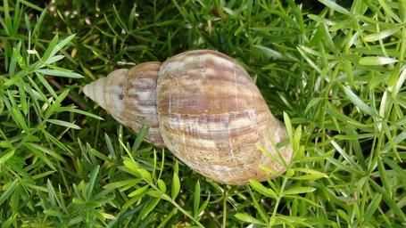 Keywords: snail shell grass outdoors nature slug green brown one wildlife