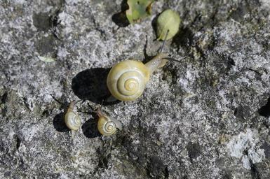 Keywords: snails family crawl steinig yellow shell slowly mollusk nature close reptile animal probe gastropoda summer housing snail fauna mother children mother and children young small young animals two nuclear family together twins