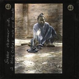 | Keywords: Snake Charmer and 2 King Cobras, Jammu, ca.1875-ca.1940 (imp-cswc-GB-237-CSWC47-LS10-043).jpg en <br> Snake Charmer and 2 King Cobras Jammu ca 1875-ca 1940 Snake charmer with 2 King Cobras male and female Photograph of an Indian snake charmer sitting on the ground with 2 king cobras The snake charmer's flute or pungi is on the ground next to him ; This belongs to a series of Church of Scotland Foreign Missions Committee lantern slides relating to Jammu City which is also known as the City of Temples A mission station occupied by Church of Scotland missionaries was founded here in the late 19th/early 20th century Jammu is also one of the three administrative divisions within Jammu and Kashmir the northernmost state in India Photographer Unknown Filename imp-cswc-GB-237-CSWC47-LS10-043 tif Coverage date 1875/1940 Part of collection International Mission Photography Archive ca 1860-ca 1960 Geographic subject region Jammu and Kashmir Type images Part of subcollection Photographs from the Centre for the Study of World Christianity University of Edinburgh U K ca 1900-ca 1940s Repository name Centre for the Study of World Christianity Archival file impaunpub_Volume7/1760 url Repository address The University of Edinburgh School of Divinity New College Mound Place Edinburgh EH1 2LX United Kingdom Geographic subject country India Format aacr2 1 lantern slide 8 x 8 cm Geographic subject continent Asia Rights Contact the repository for details Part of series In the Temple City of Jammu LS10 Repository email divinity-CSWC ed ac uk Subject lcsh Keyword Snakes; Musical instruments; Manners and customs Date created 1875/1940 Publisher of the digital version University of Southern California Libraries Subject aat genre portraits Format aat lantern slides Legacy record ID impa-m69311 Access conditions http //www ed ac uk/schools-departments/divinity/research/centres/world-christianity/collections-resources File GB 237 CSWC47/LS10/43 1875/1940 author http //digitallibrary usc edu/cdm/ref/collection/p15799coll123/id/64877 PD-old-70-1923 Magic lantern images Images from USC Digital Library uploaded by Fæ International Mission Photography Archive ca 1860-ca 1960 |