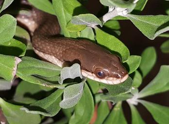 Keywords: snake graham's crayfish snake reptile animal creature scales head snake head hidden hiding non-venomous slither slithering wildlife nature biology shrub leaves close up herpetology peekaboo colubridae regina grahamii